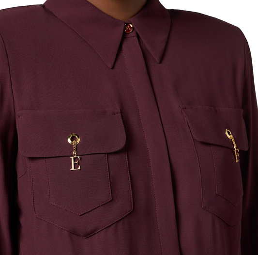 • Elisabetta Franchi camicia in georgette con tasche borgogna