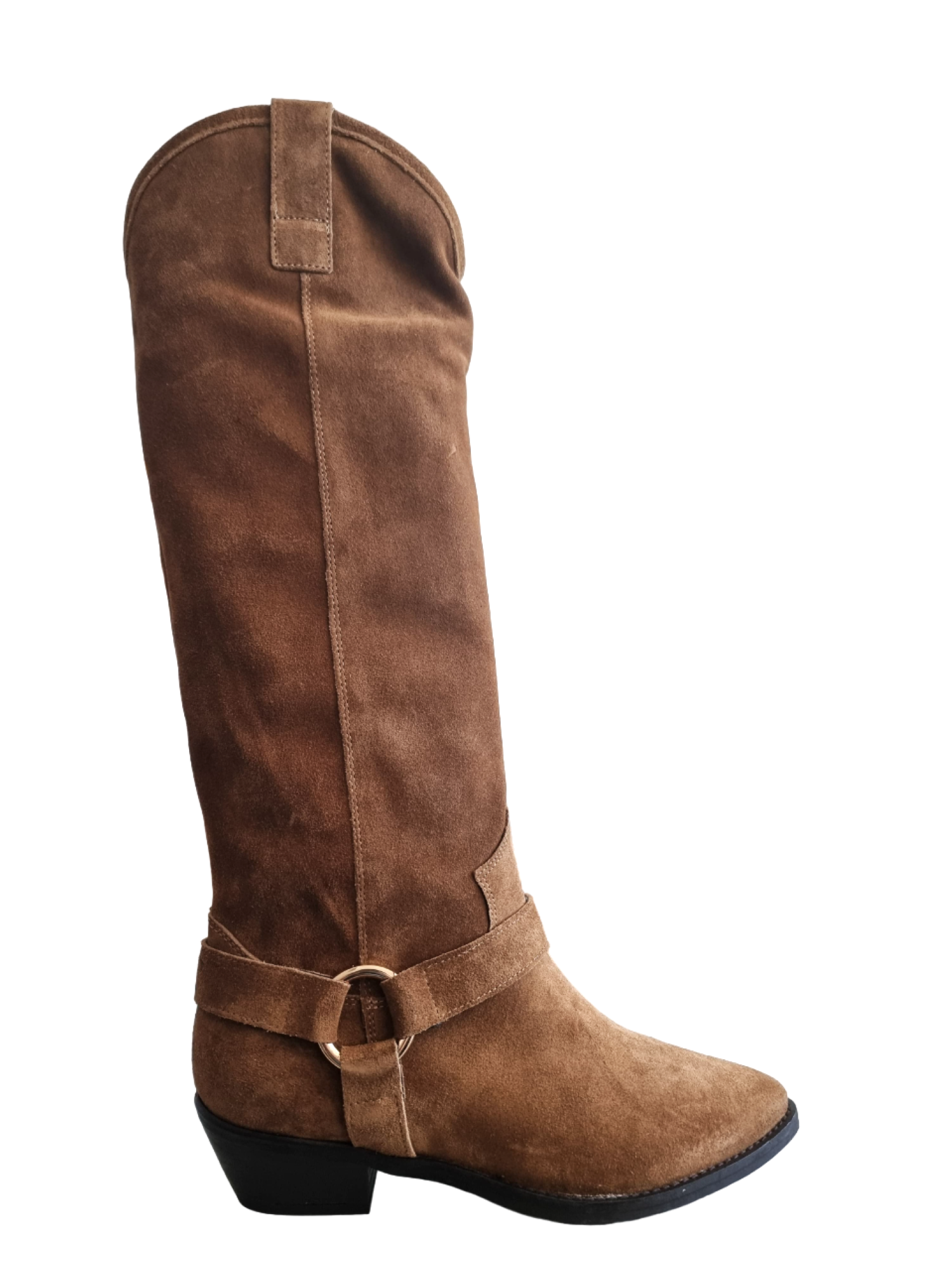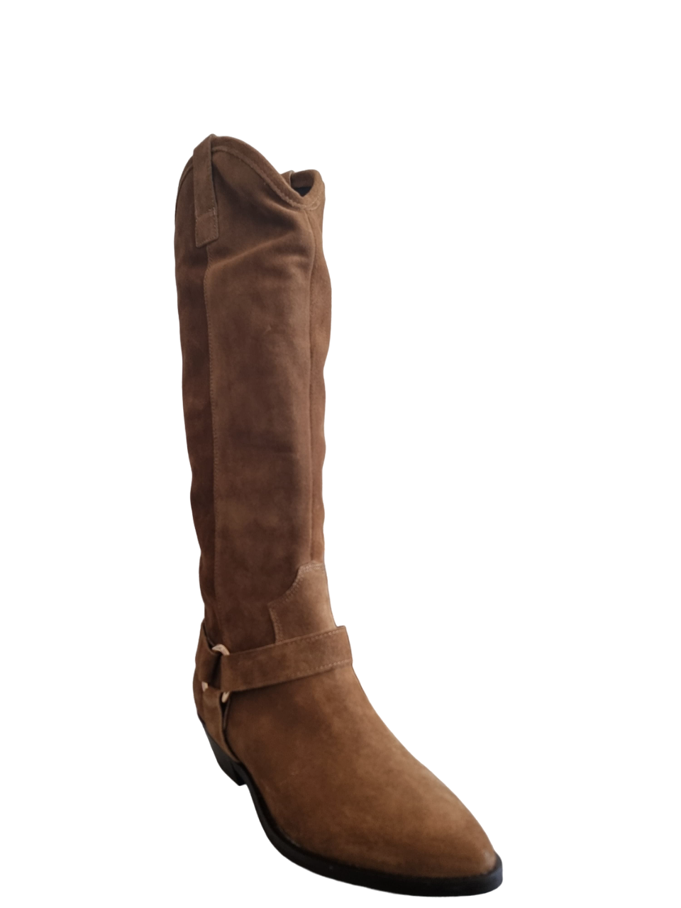 Presentiamo con orgoglio gli stivali camperos Saona di Kirò, un capolavoro di eleganza e raffinatezza. Realizzati in pregiata pelle scamosciata cuoio, questi stivali alti da donna si caratterizzano per il loro modello a punta, che conferisce un'aria distintiva e contemporanea.