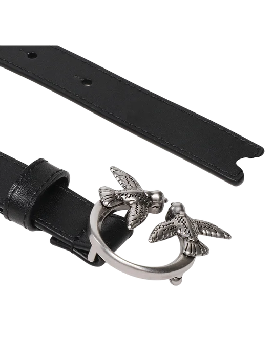 Pinko cintura in pelle con fibbia Love Birds h3 nero argento