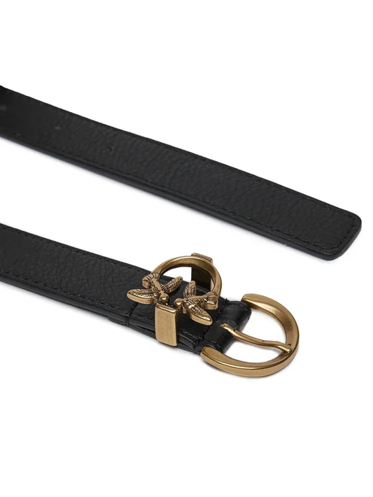 Pinko cintura Tamboril in pelle martellata h 2,5 con logo Love Birds nero oro