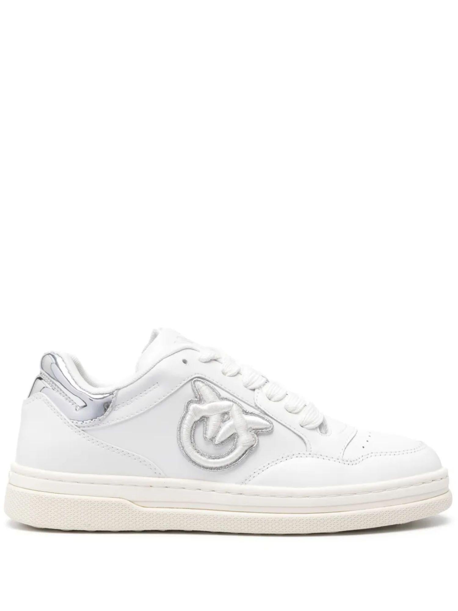 Pinko sneakers Mandy in pelle con logo Love Birds bianco argento