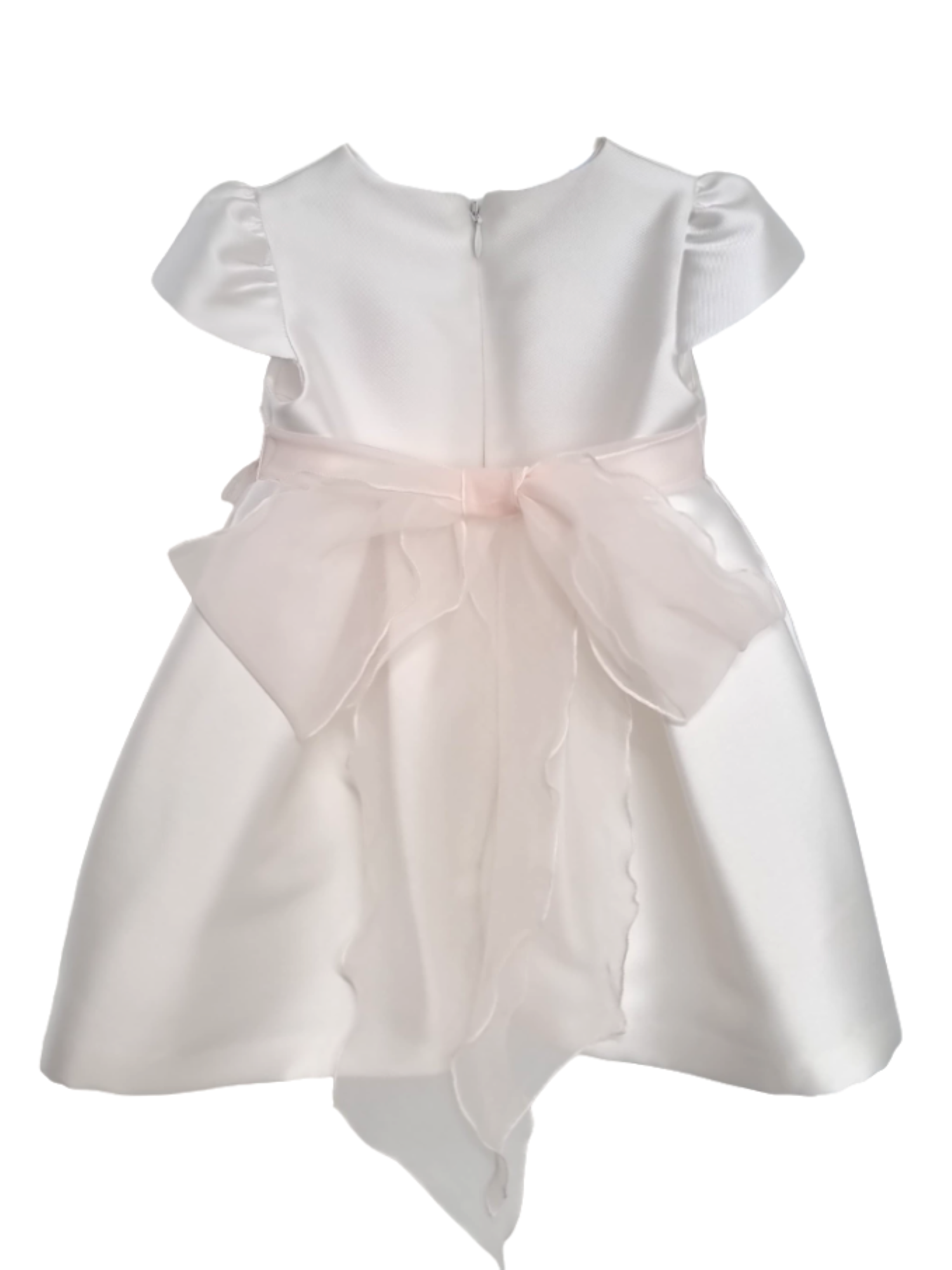 Scoprite l'eleganza senza tempo dell'abito da cerimonia per neonata Mimilù, realizzato in pregiato mikado bianco. Questo splendido vestito è progettato per le occasioni speciali, rendendo ogni momento indimenticabile.