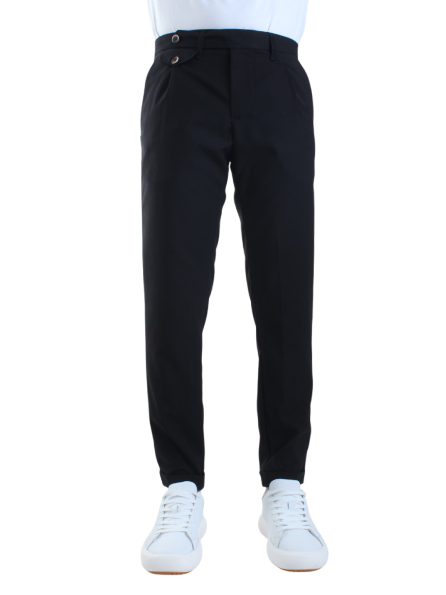 La gamba affusolata, completata da risvolti sul fondo, conferisce un aspetto slanciato e contemporaneo. Inoltre, il taschino con bottone aggiunge un elemento di funzionalità e distinzione.