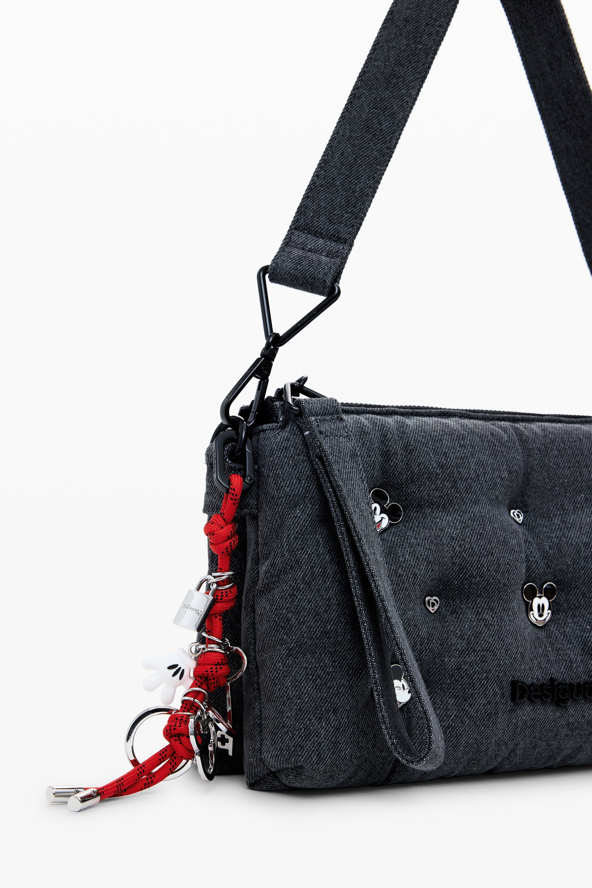 Questa raffinata borsa a spalla presenta un manico unico, accompagnato da una tracolla regolabile e removibile, offrendo versatilità e comodità per ogni occasione. Il design è arricchito dagli iconici Mickey Studs Dortmund, rendendo ogni pezzo unico e accattivante.