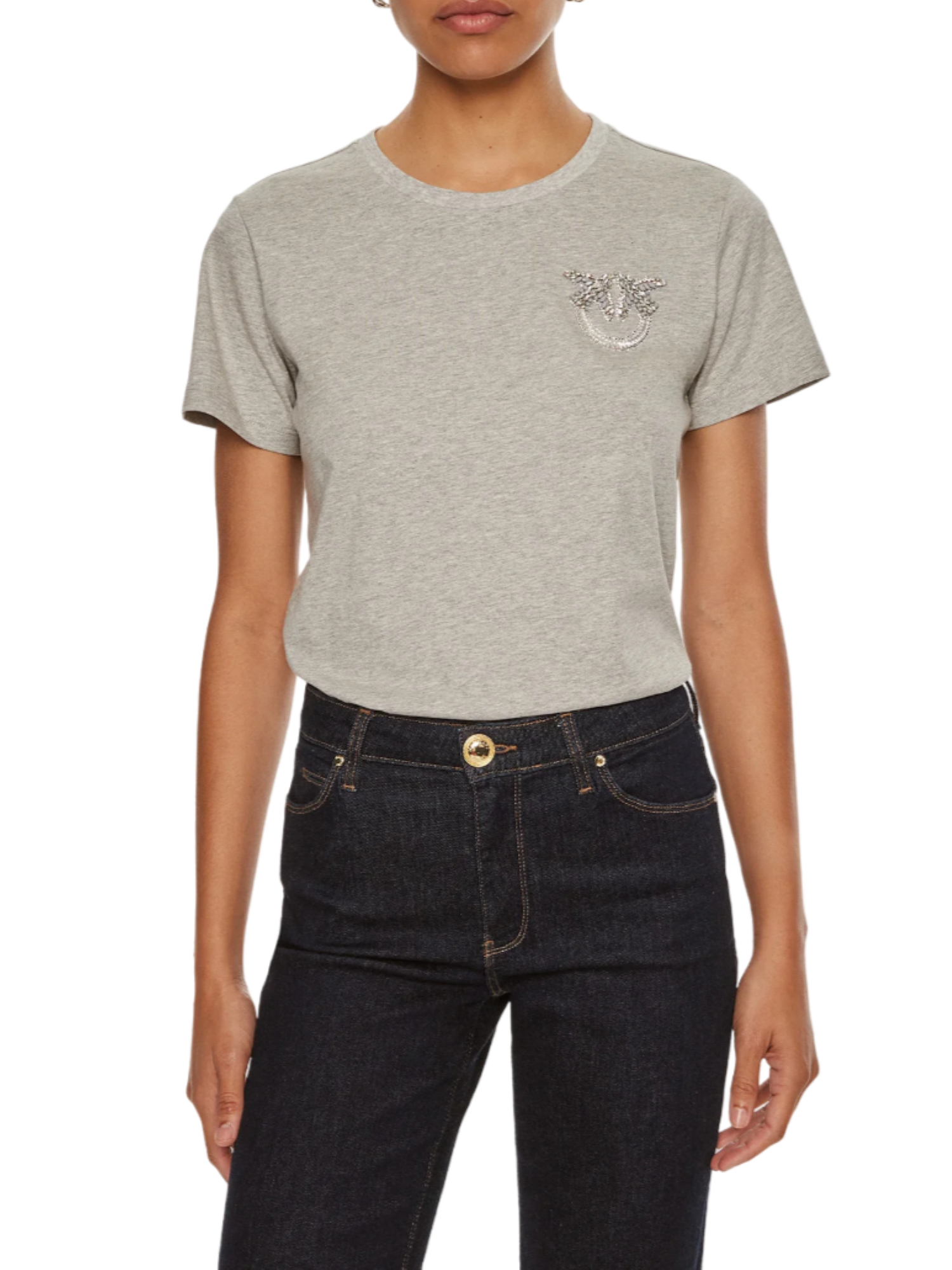Pinko T-shirt manica corta Nambrone con logo gioiello grigio