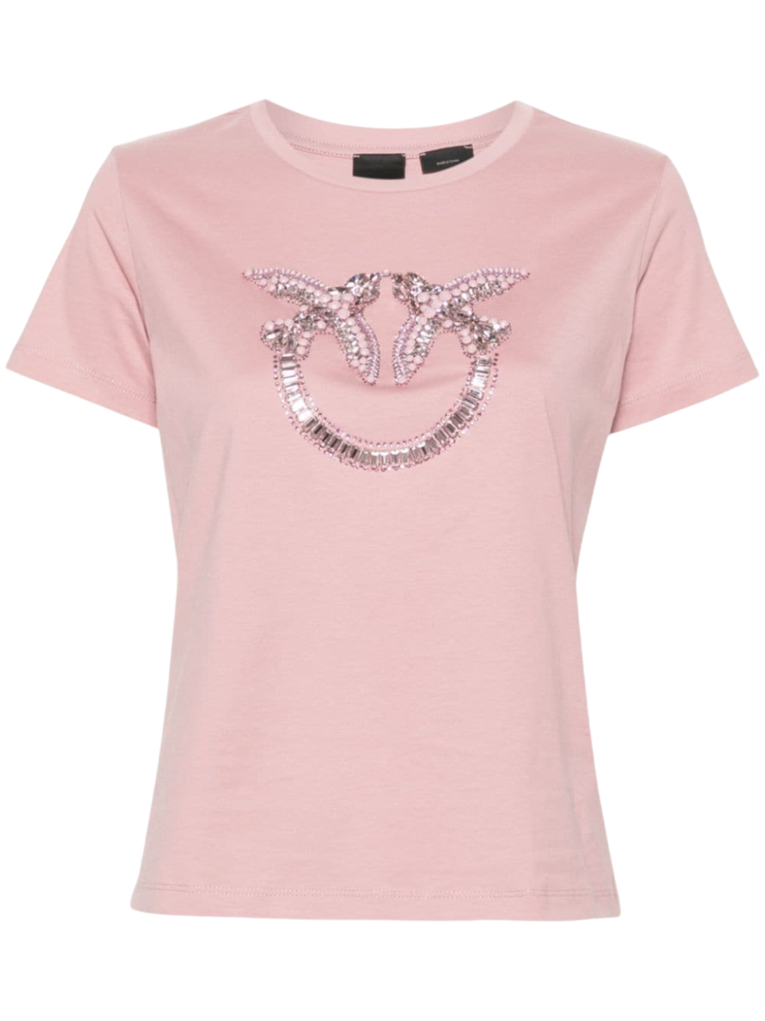 Pinko T-shirt manica corta Quentin con logo Love Birds gioiello rosa