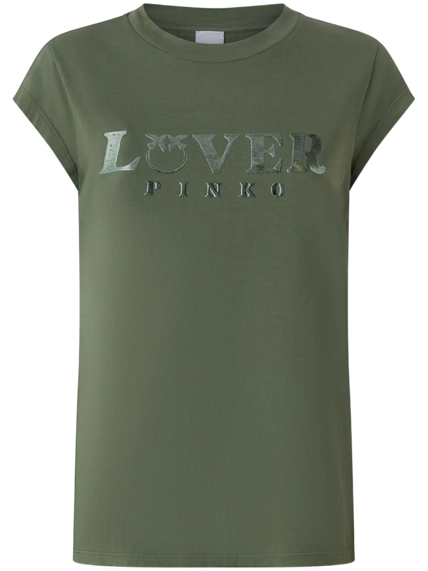 Pinko T-shirt Marrakech manica corta con logo verde militare