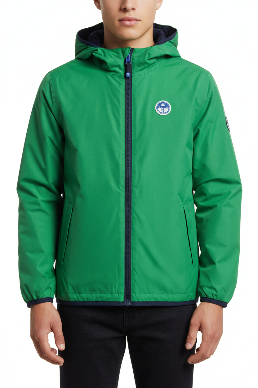 Scoprite il giubbotto North Sails, un elegante compagno per le vostre avventure quotidiane e per i momenti di svago. Questo giubbotto a maniche lunghe con cappuccio si distingue per la sua versatilità: il design reversibile in verde e blu offre una doppia opzione di stile, permettendovi di cambiare look in un attimo.