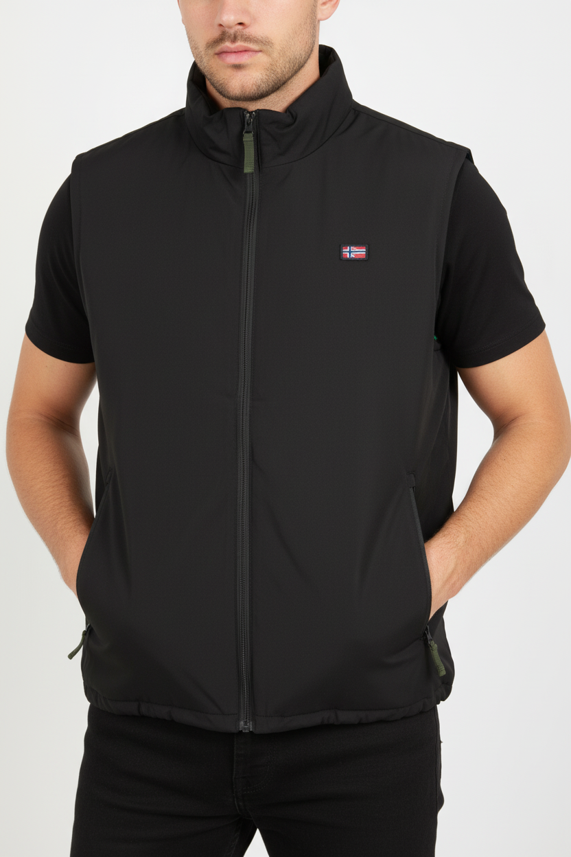Realizzato con un interno in pile, assicura un calore avvolgente senza compromettere la libertà di movimento. Le due tasche esterne offrono un'ottima funzionalità, permettendo di tenere a portata di mano i vostri oggetti essenziali. La chiusura con zip garantisce una vestibilità sicura e un facile accesso, mentre l'applicazione del logo aggiunge un tocco distintivo e di classe.
