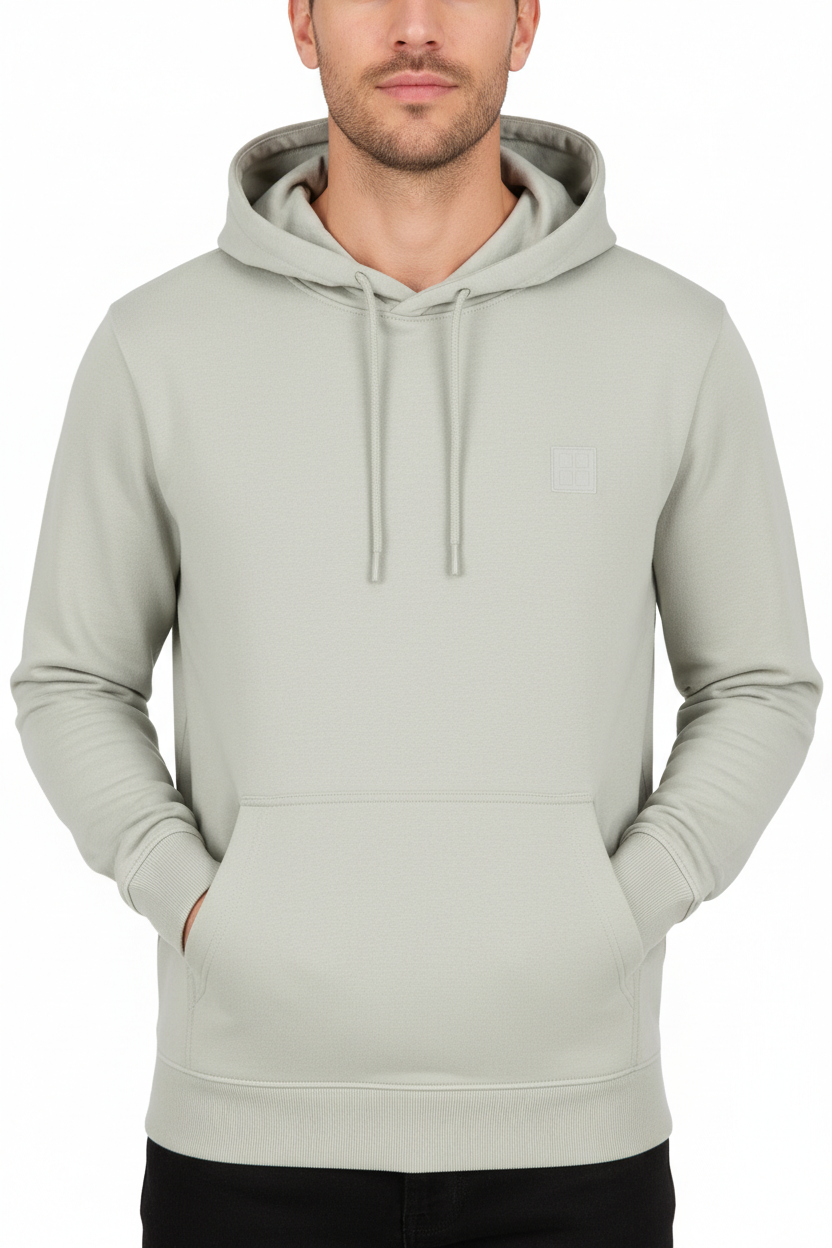 FELPA MANICHE LUNGHE CON CAPPUCCIO, GARZATA, 1 TASCONE CENTRALE, RICAMO, APPLICAZIONE, LOGO