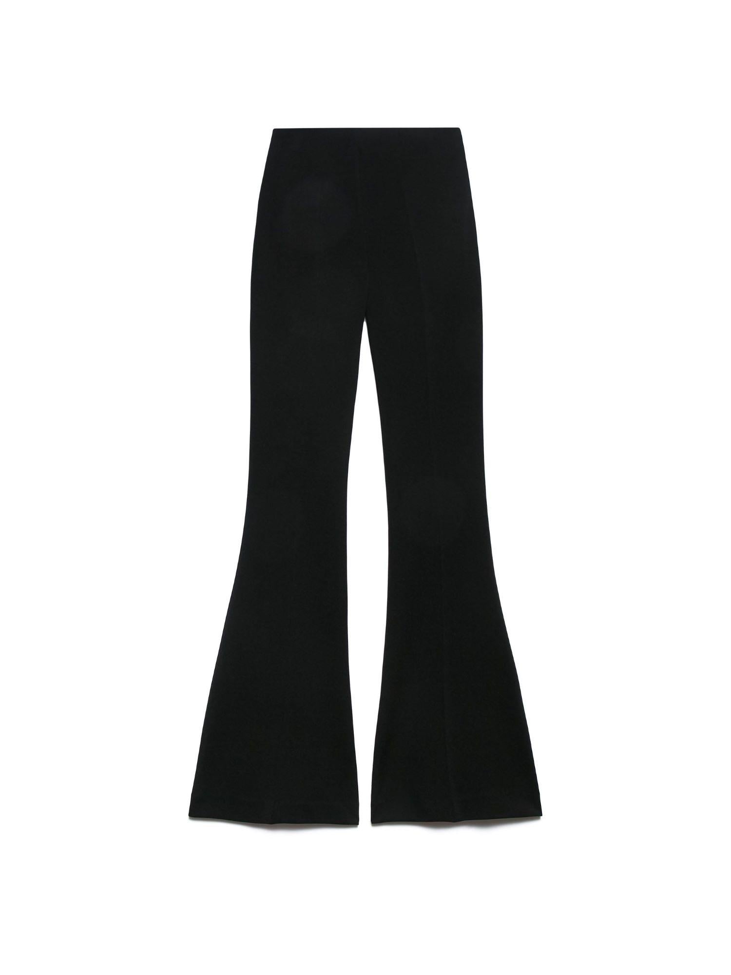 Caratterizzati da una vita alta, i pantaloni presentano una chiusura laterale con cerniera, garantendo una vestibilità sicura e raffinata. La silhouette flare è progettata per abbracciare la gamba fino al ginocchio, per poi ampliare delicatamente verso il fondo, creando un look fluido e sofisticato.
