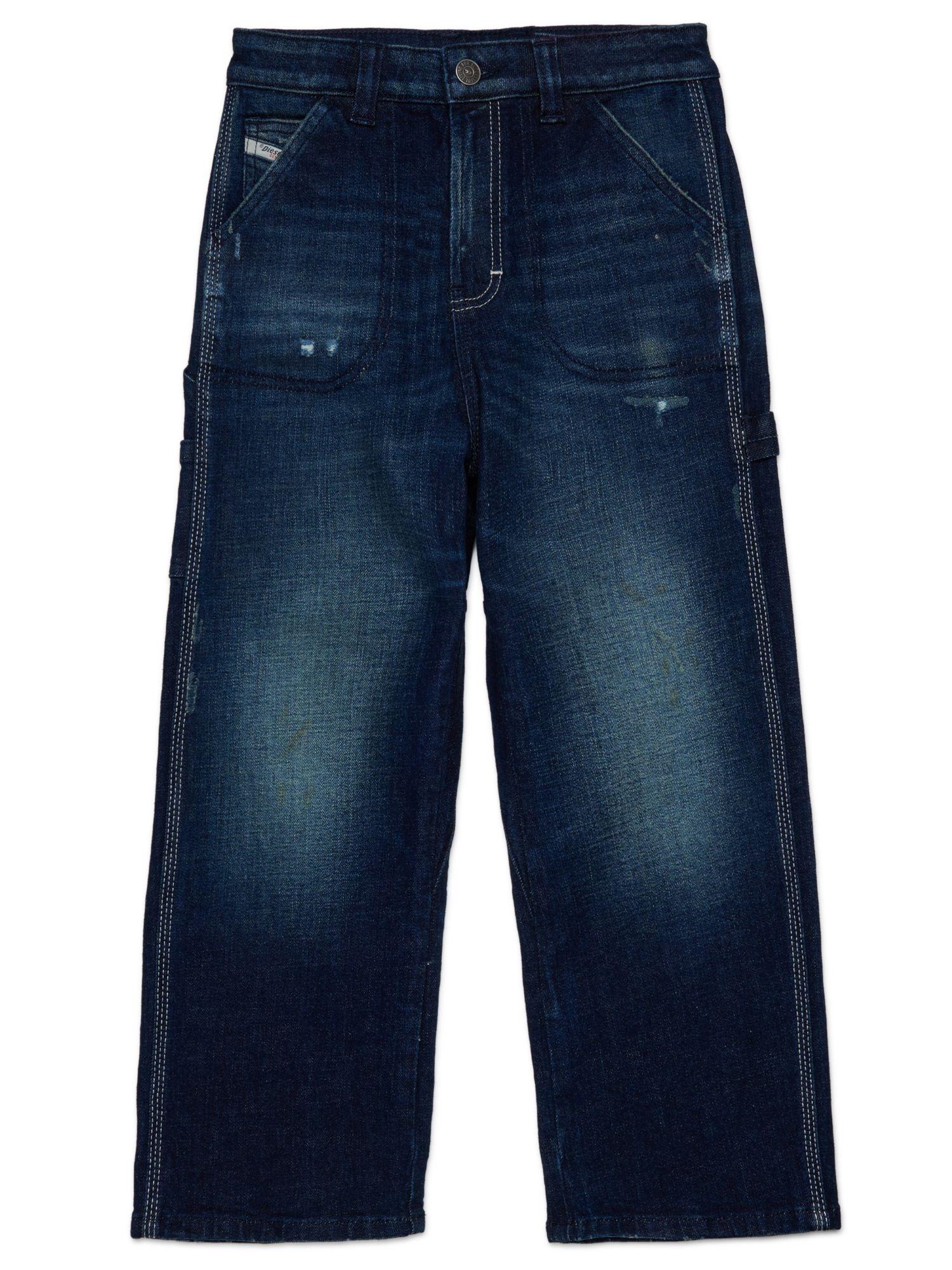 Composti dal 99% di cotone e dall'1% di elastan, questi jeans sono ideali per le avventure quotidiane, garantendo un'ottima elasticità e libertà di movimento. Scegliete il comfort e la qualità dei Diesel jeans bambino gamba larga lavaggio blu, il capo perfetto per ogni occasione.
