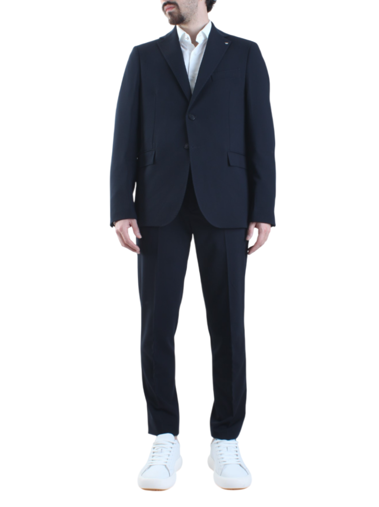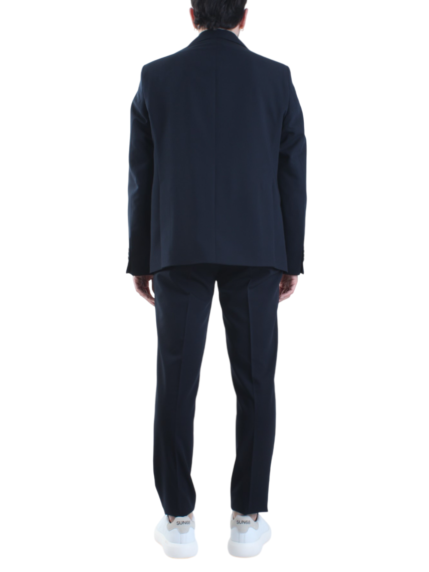 La giacca si distingue per la sua abbottonatura monopetto, abbinata a un elegante collo con revers. Il dettaglio distintivo della spilletta iconica sul rever aggiunge un tocco di classe e originalità. Le tasche con patta sul davanti e la tasca a filetto sul petto non solo offrono funzionalità, ma contribuiscono anche allo stile complessivo del completo. Due spacchetti sul fondo della parte posteriore garantiscono libertà di movimento e un comfort ottimale.