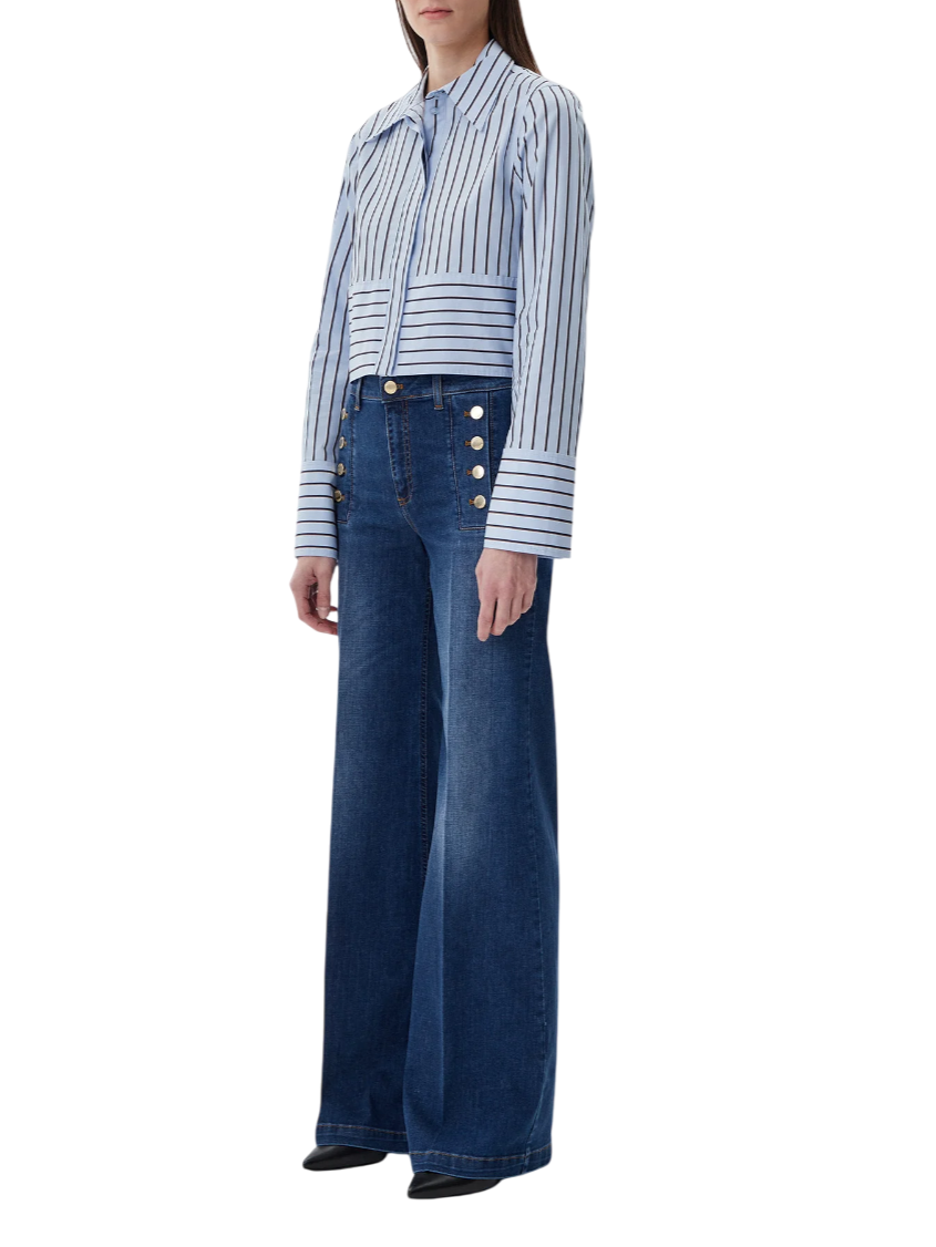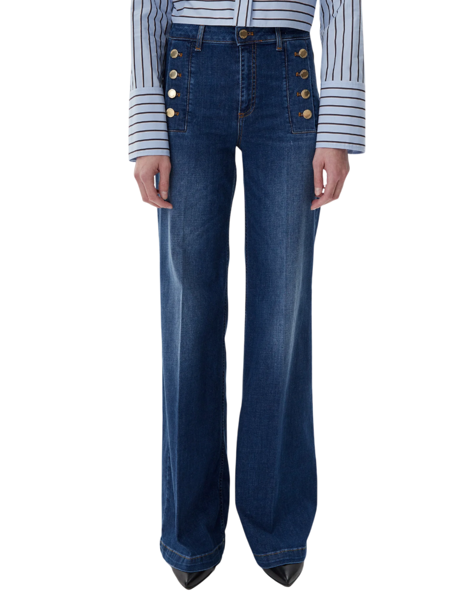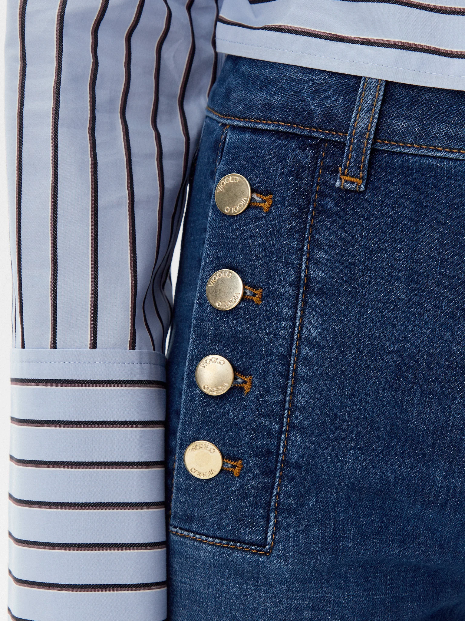 Vicolo jeans a zampa Giudith vita alta con bottoni lavaggio scuro